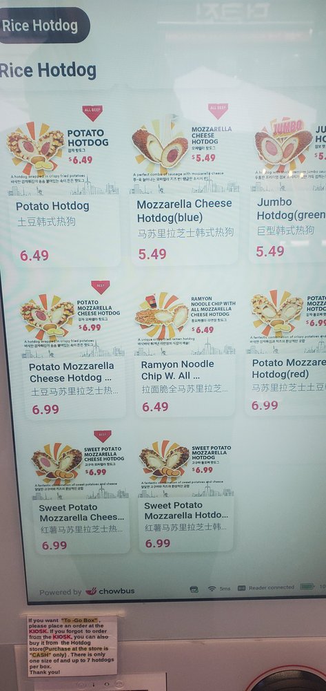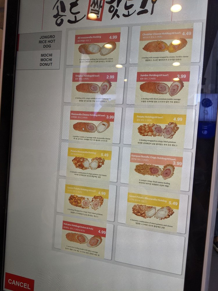 Introducing Jongro Rice Hot Dog, a Korean hot dog spot located in the heart of Korea town in New York City. Known for their unique and delicious hot dog options, customers rave about the crispy texture of their hot dogs and the variety of toppings available. With options like the potato hotdog with crispy potato pieces, sriracha mayo, cheddar cheese, honey mustard, and ketchup, there is something for everyone to enjoy. The fast and friendly service, along with the convenient location, make Jongro Rice Hot Dog a must-visit spot for hot dog lovers. Whether you prefer a classic hot dog with ketchup and sugar or a more adventurous option like the volcano dog with cheddar, Jongro Rice Hot Dog has something to satisfy your cravings. Don't miss out on the opportunity to try these tasty and unique Korean hot dogs!